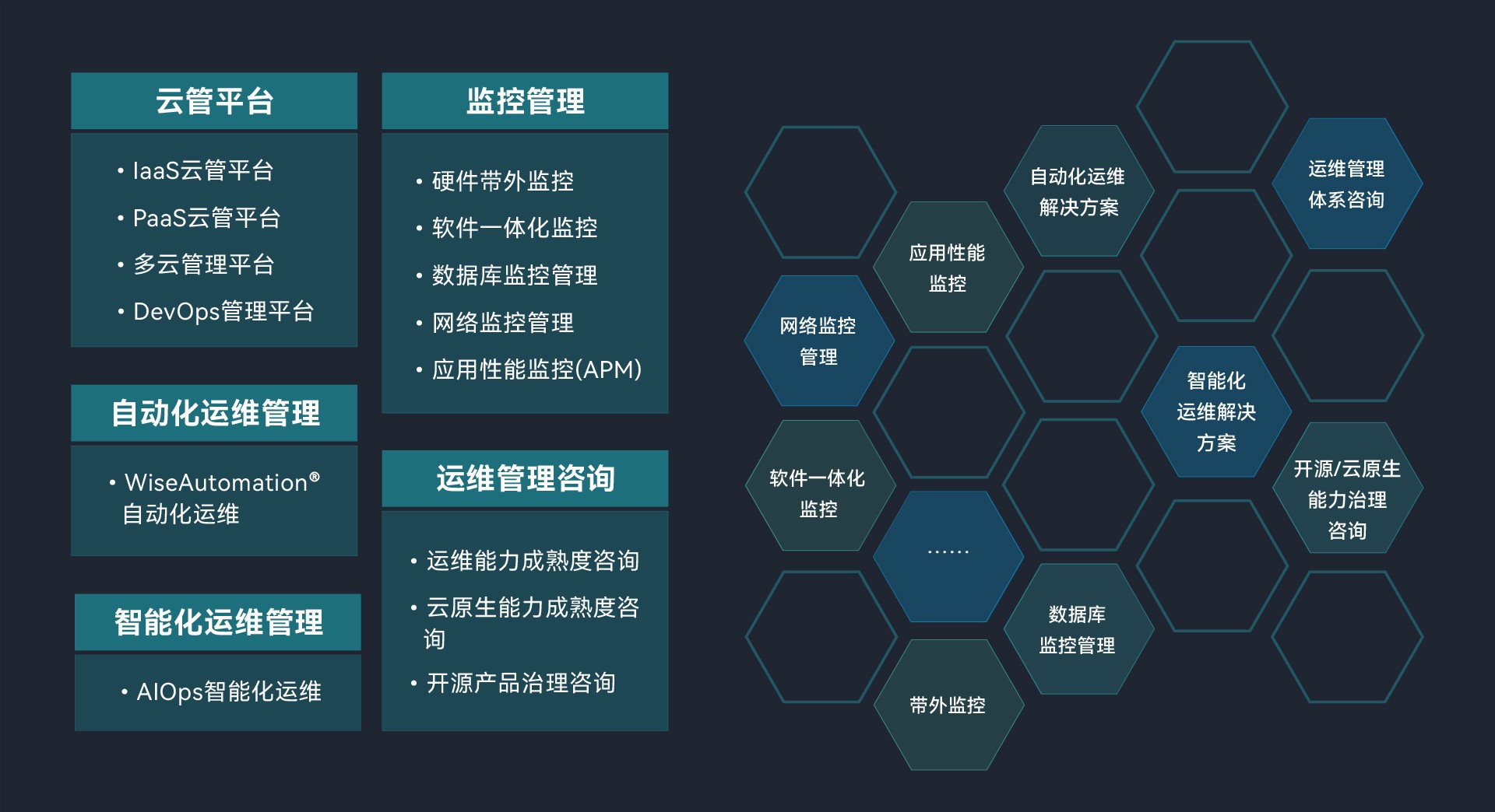互博官方网页版在运维管理产品领域提供硬件、软件监控、自动化运维、智能化运维和安全管理等产品解决方案,帮助客户实现对基础设施、应用程序和服务的全方位监控、反馈和管理。同时,互博官方网页版在运维支撑平台领域提供云、大数据和智能平台中台解决方案,为客户打造基础设施管理平台,确保客户在各类运维需求下,都能够得到充分的支撑和保障。